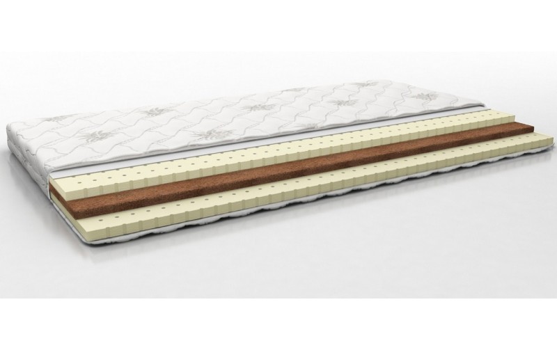 Матрас Ортопедический Беспружинный Perrino КРОХА средней жесткости, верхний и нижний слои которого изготовлены из натурального латекса. Изделие не содержит пружин, внутри расположена кокосовая койра, которая придает изделию прочность и жесткость. Изделие имеет несколько зон жесткости, благодаря чему ваш вес равномерно распределяется по всему матрасу. Чехол съемный на молнии изготовлен трикотажа. Матрас изготовлен из гипоаллергенных дышащих материалов. Максимальная нагрузка на одно спальное место составляет 60 кг, а высота 7 см. При правильном уходе и использовании матрас прослужит более 8 лет.