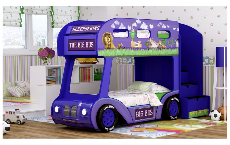Кровать Автобус "Мадагаскар -ЛЮКС" (Синий)