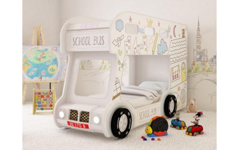 Кровать Автобус "Город" прекрасно подойдет для детей. кровать изготовлена в нейтральном дизайне, она обязательно понравится как девочке, так и мальчику. Кровать выполнена из высококачественного ЛДСП с фотопечатью, благодаря которой рисунок не стирается. Основание кровати выполнено из натурального дерева, с эффектом ортопеда,а так же имеет 4 ящика для белья. Передняя часть изготовлена из экологически чистого пластика, со светящимися фарами, а так же в комплект входят два пластмассовых колеса. Размеры спального места составляют 1700х700 мм.