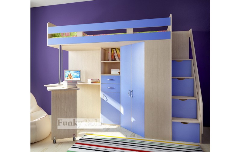 Кровать чердак Фанки Соло 1 (Голубой+Дуб кремона)