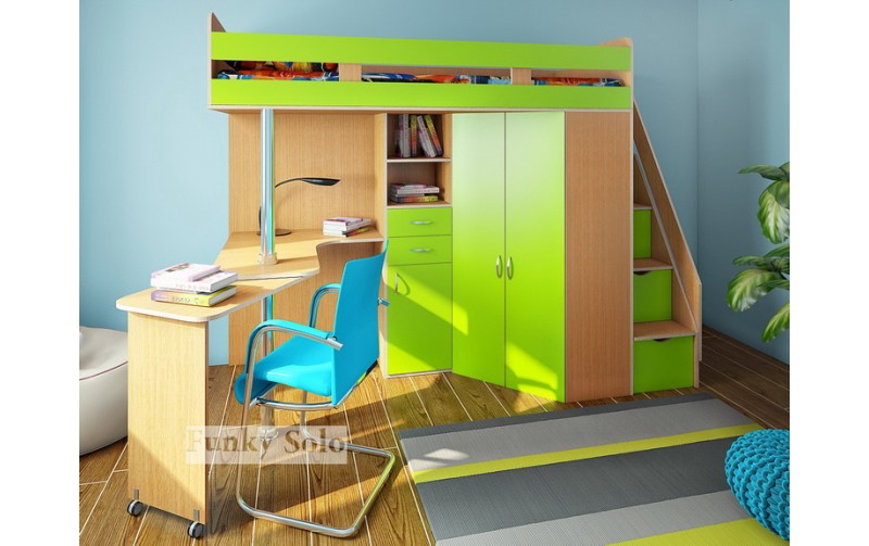 Кровать чердак Фанки Соло 1 (Салатовый+Бук)