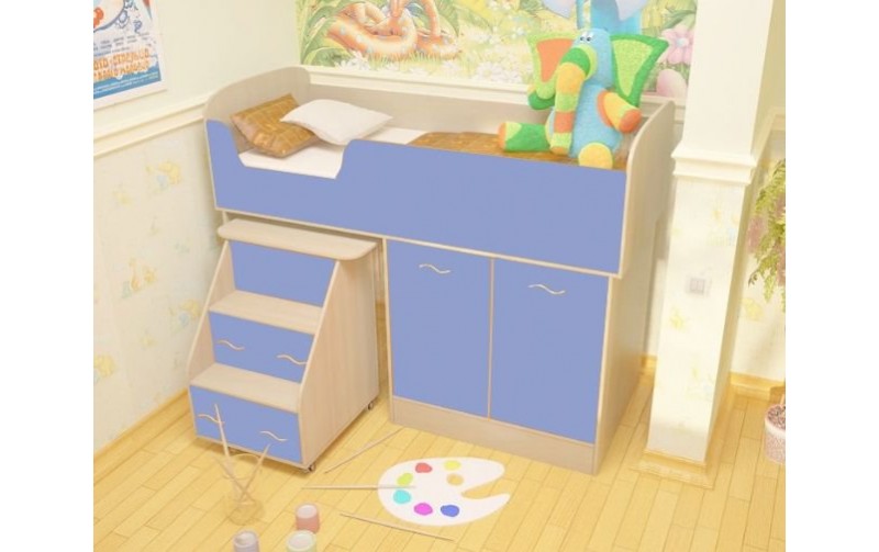 Кровать чердак Дюймовочка-2 Микро (Синий+Крем Ваниль)