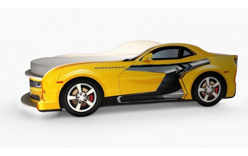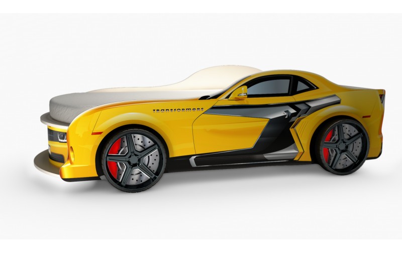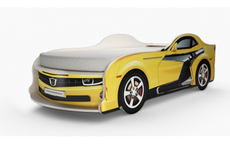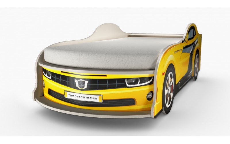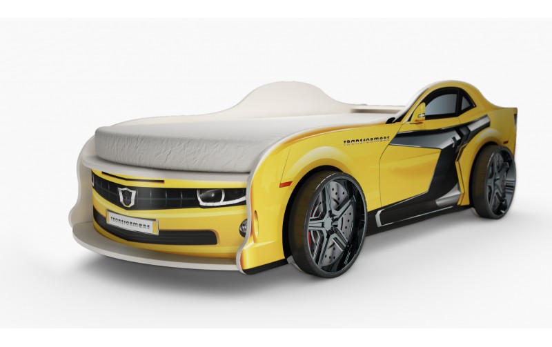Кровать машины трансформер Желтая, предназначена для детей от 2-х до 10 лет. В комплект входит матрас, верхний и нижний слои которого изготовлены из кокосовой койры, толщиной 1 см, а в середине расположен слой из холлофайбера. Чехол матраса съемный на молнии, выполнен из гипоаллергенного жаккарда. Основание кровати размером 180х80 см, изготовлено из ламелей, придающих ортопедический эффект, а так же изделие оснащено подъемным механизмом с ящиком для белья и игрушек. По желанию кровать можно декорировать фарами с подсветкой и пластиковыми накладными колесами.