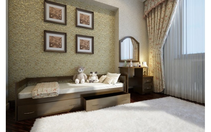 Кровать DreamLine Тахта с ящиками (бук) изготовлена из массива дерева. В основании кровати деревянные ламели, создающие ортопедический эффект. Кровать оснащена бортиком, и двумя бельевыми выкатными ящиками на телескопических направляющих. Кровать изготовлена в классическом стиле с прямыми четкими линиями. Высота изножья 45 см, боковых поручней и изголовья 65 см. Мебель покрыта высококачественным полиуретановым лаком, который защищает поверхность от механических и термических воздействий.