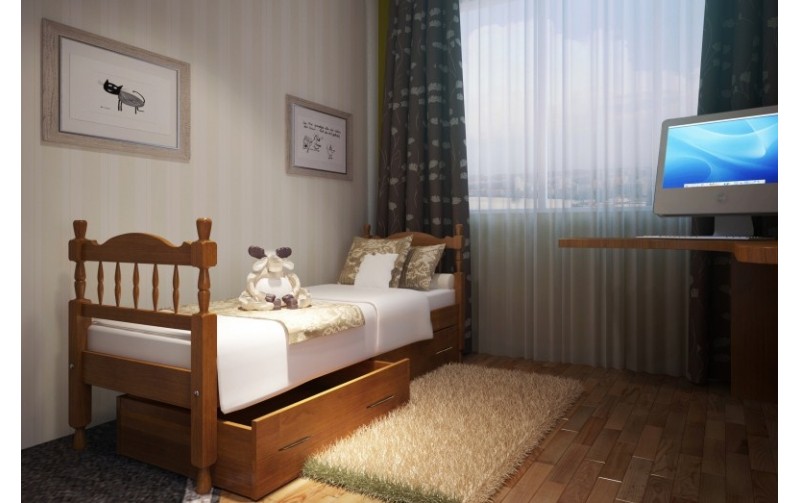 Кровать DreamLine Юниор (бук) изготовлена из натурального дерева в классическом стиле. Изделие декорировано деревянными вставками, изогнутыми линиями. Кровать имеет два выкатных ящика для постельного белья. Высота изножья 95 см, боковых поручней и изголовья 95 см. Мебель покрыта высококачественным полиуретановым лаком, который защищает поверхность от механических и термических воздействий.