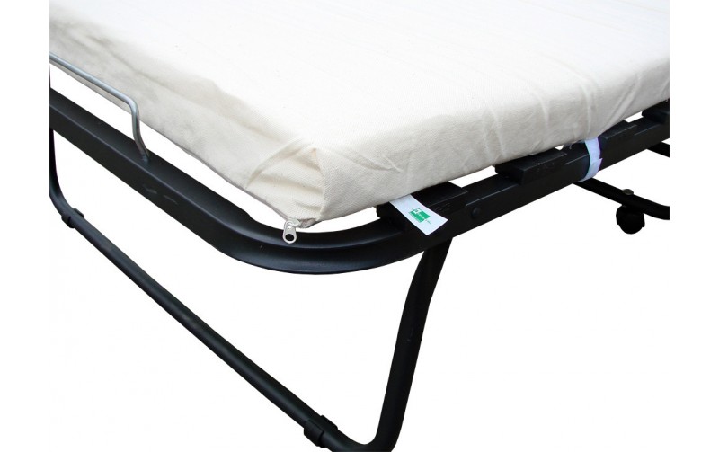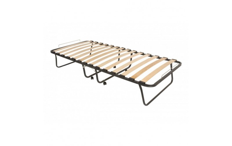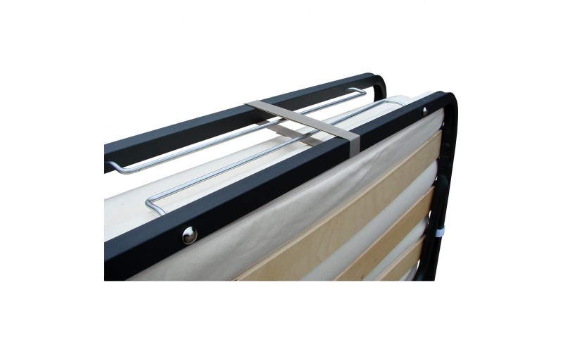 Односпальная раскладная кровать с деревянными ламелями Хельга М - с размером спального места 200х90 - вариант раскладушки на деревянных ламелях с матрасом 6 см. Матрас на специальных липучках, которые надежно фиксируют его у основания, не давая сползать во время сна. Стоимость такой раскладушки значительно меньше, чем у ортопедического основания на таких же деревянных ламелях, а возможность складывать Хельга М делает ее намного удобнее, не уступая в качестве сна. Ламели произведены из березового массива, спать на такой раскладушке гораздо удобнее, чем с сеткой. Раскладушка Хельга М изготовлена из стальной трубы диаметром 25 мм и березовых ламелей, максимальная допустимая нагрузка на кровать 120 кг. Чехол матраса - поликотон высокого качества. Вес раскладушки Хельга М всего 16 кг, высота в разобранном виде 34 см. Такая раскладная кровать идеально подойдет для рослых людей, это единственная модель с размером спального места 200х90.