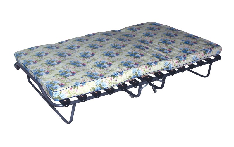 Кровать раскладная двуспальная Симона бюджетный вариант раскладушки для двоих. Данная модель является самой широкой раскладушкой на российском рынке. Прочный стальной каркас сделан из трубы диаметром 25 мм, это позволяет выдерживать нагрузку до 200 кг. Основание раскладной кровати Симона изготовлено из 13 березовых ламелей. Такая кровать очень удобна и по качеству сна не уступает ортопедическим основаниям в обычных кроватях. Матрас высотой 9 см из Холлкона идет в комплекте. Центральные ножки кровати имеют специальные колесики для транспортировки, перевозить такую раскладную кровать с места на место очень лугко и удобно. Вес 22 кг, высота в разложенном состоянии 26,7 см.