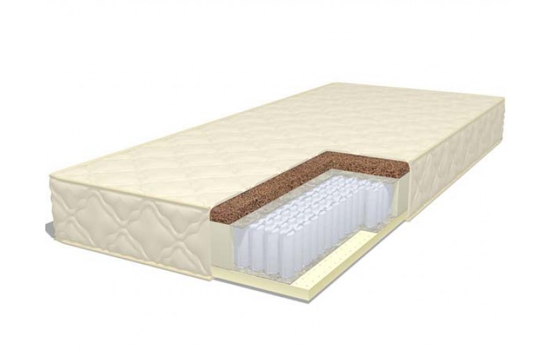 Матрас состоит из различных материалов, отличительная черта данного производителя – он использует для изготовления комплектующих только натуральные компоненты. Сверху матрас разработан из трех сантиметрового слоя натурального латекса, латексированной кокосовой койры 1 см и слоя термовойлока, который создает антибактериальную среду. Снизу матрас выполнен из кокосовой койры, высотой в три сантиметра и слоя нетканого полотна.