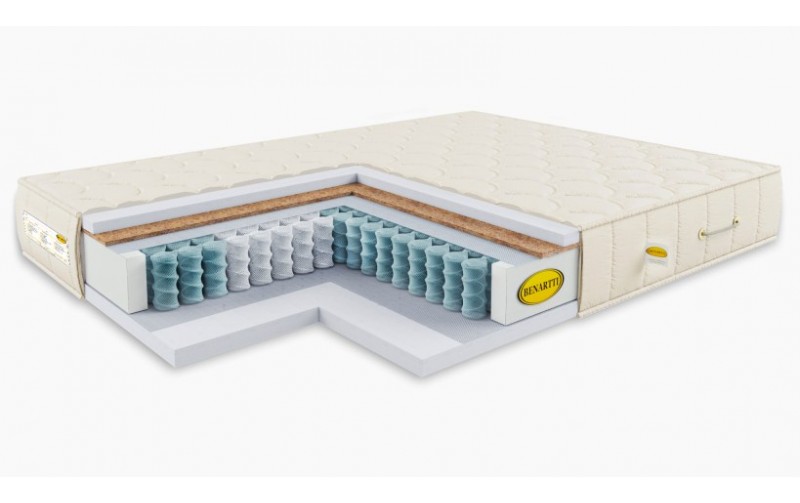 Матрас Ортопедический с блоком независимых пружин Benartti Classic Max Duo TFK двусторонний матрас средней жесткости. Верхний слой выполнен из искусственного латекса и кокосовой койры. Нижний слой изготовлен из искусственного латекса толщиной 4 см. Внутри расположен пружинный блок из 512 пр./м2. Между слоями и пружинным блоком расположены изоляционные слои спанбонда, Общая высота изделия составляет 22 см, а максимальная нагрузка на спальное место 135 кг. Чехол изготовлен из хлопкового жаккарда, на молнии, стеган синтепоном. Матрас оснащен четырьмя ручками для переворачивания, а так же аэраторами для лучшей вентиляции слоев. Матрас изготовлен из гипоаллергенных дышащих материалов. При правильном уходе и использовании матрас прослужит более 25 лет.