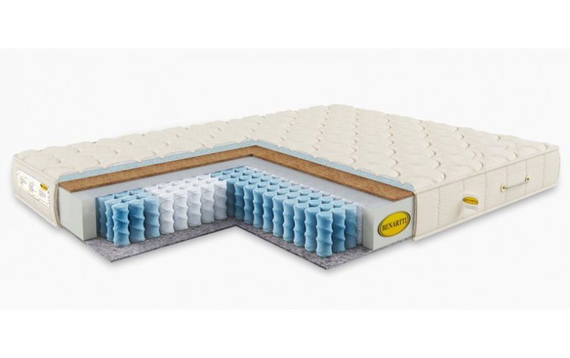 Матрас Ортопедический с блоком независимых пружин Benartti Optimal Mini S1000, верхний слой которого средней жесткости изготовлен из кокосовой койры, толщиной 1 см, затем следует слой из войлока. Нижний слой умеренно средний выполнен из войлока. В середине изделия расположен блок независимых пружин из 1000 пр./м2. Общая высота матраса составляет 18 см, а нагрузка на одно спальное место до 120 кг. Чехол изготовлен из жаккарда, стеганного синтепоном. Матрас изготовлен из гипоаллергенных дышащих материалов. При правильном уходе и использовании матрас прослужит более 25 лет.