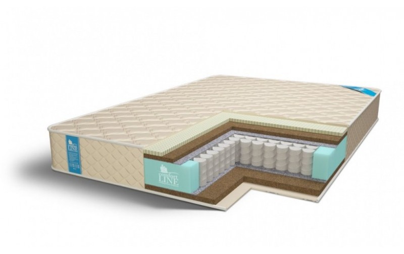 Матрас Ортопедический с блоком зависимых пружин Comfort Line Hard-HardStyle TFK двусторонний, верхний слой жесткий, нижний умеренно жесткий. Верхний слой изготовлен из натурального латекса, придающий эластичность и упругость изделию. Далее следует слой из кокосовой койры, придающий жесткость и прочность матрасу. Нижний слой матраса изготовлен из кокосовой койры, толщиной 3 см. В середине изделия расположен пружинный блок с независимыми пружинами из 512 пр/м2. Между слоями и пружинным блоком расположены изоляционные слои войлока. Общая высота изделия составляет 22 см, а максимальная нагрузка на спальное место 150 кг. Чехол изготовлен из хлопкового жаккарда, на молнии, стеган синтепоном. Матрас изготовлен из гипоаллергенных дышащих материалов. При правильном уходе и использовании матрас прослужит более 25 лет.