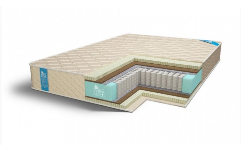 Матрас Ортопедический с блоком зависимых пружин Comfort Line Medium Comfort S1000 средней жесткости. верхний и нижний слои изготовлены из натурального латекса, придающий мягкость и упругость изделию. Далее следует слой из кокосовой койры, который делают матрас жестким и прочным. В середине изделия расположен пружинный блок с независимыми пружинами из 1000 пр/м2. Между слоями и пружинным блоком расположены изоляционные слои войлока. Общая высота изделия составляет 23 см, а максимальная нагрузка на спальное место 150 кг. Чехол изготовлен из хлопкового жаккарда, на молнии, стеган синтепоном. Матрас изготовлен из гипоаллергенных дышащих материалов. При правильном уходе и использовании матрас прослужит более 25 лет.
