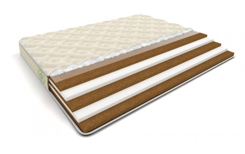 Матрас Ортопедический бес пружинный Matramax Экосэндвич 19 К односторонний, жесткий. Изделие выполнено из 5 слоев. Верхний и нижний и средний слой изготовлены из косовой койры, толщиной 3 см, которые делают изделия жестким и прочным. Второй и четвертый слои выполнены из искусственного латекса, толщиной 3 см, придающие упругость и мягкость. Матрас не содержит пружин. Общая высота изделия составляет 19 см, а максимальная нагрузка на спальное место 130 кг. Чехол изготовлен из хлопкового жаккарда, на молнии, стеган холлофайбером, обработан противомикробной и антигрибковой пропиткой. Матрас изготовлен из гипоаллергенных дышащих материалов. При правильном уходе и использовании матрас прослужит более 25 лет.