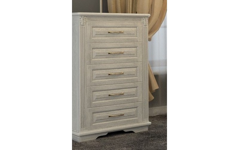 DreamLine Комод узкий Палермо бук .выполнен в классическом стиле с резьбой на ящиках, прекрасно дополните интерьер любой спальной комнаты. Благодаря своим габаритам изделие легко разместить даже в самом маленьком пространстве. Комод имеет следующие размеры: ширина: 74 см, длина: 127 см, глубина: 53 см. Комод имеет выкатных ящиков с телескопическим направляющими.