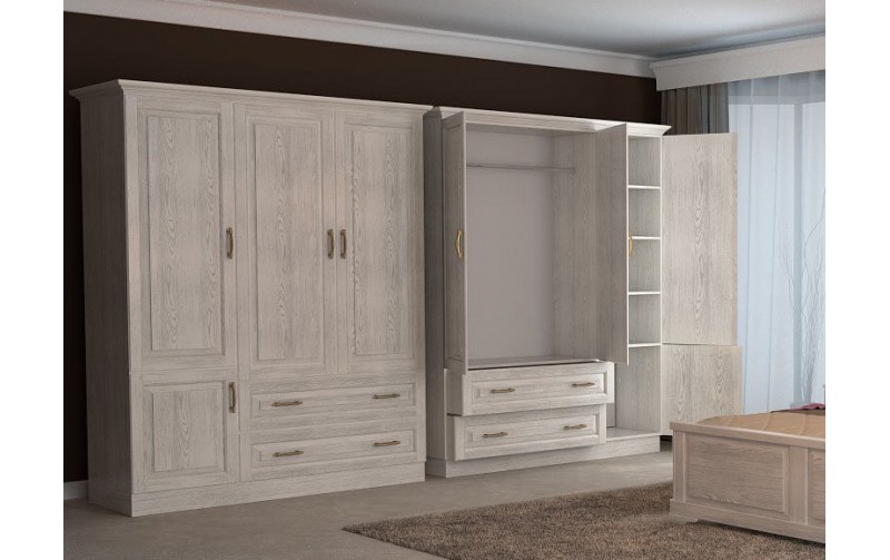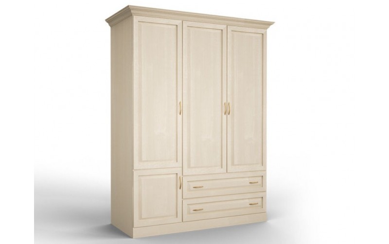 DreamLine Шкаф 3-х створчатый (МЛПД/ясень) изготовлен из МЛПД и натурального массива дерева, что делает шкаф более доступным, но не менее прочным и надежным. Изделие выполнено в классическом стиле, сочетающим прямые и четкие линии. Дверцы декорированы резьбой, а так же оснащены петлями с доводом, что позволяет им мягко и бесшумно закрываться. По желанию клиента шкаф может быть изготовлен в различных модификациях: с антресолью сверху/снизу или же с выкатными ящиками снизу и закрывающийся тумбой. Размеры: Ш135*Г58*В220 см. Мебель покрыта высококачественным полиуретановым лаком, который защищает поверхность от механических и термических воздействий.