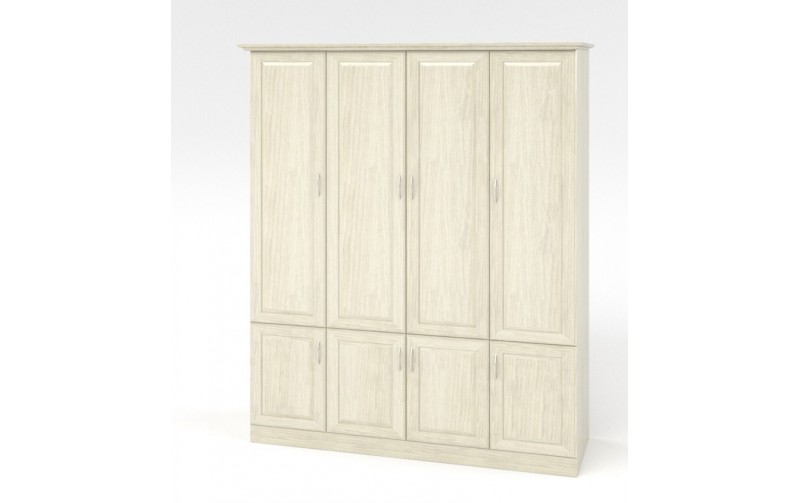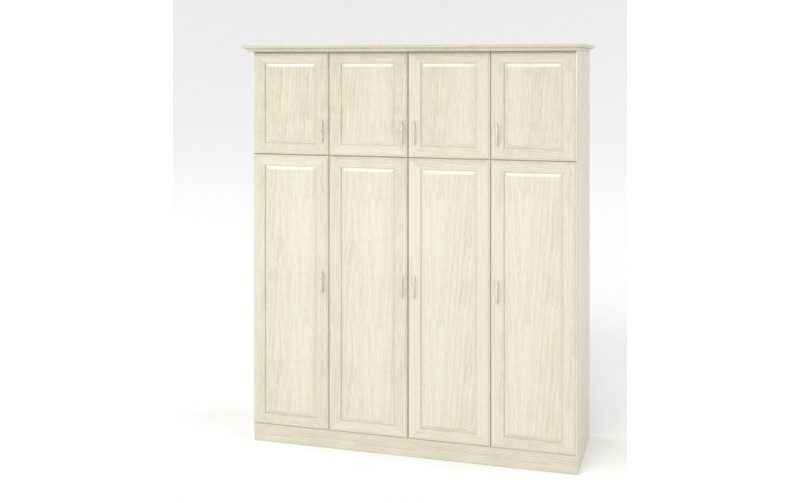 DreamLine Шкаф 4-х створчатый (бук) изготовлен из массива натурального дерева, в классическом стиле, декорирован резьбой. По желанию клиента изделие может быть выполнено в одной из модификаций с антресолью сверху/снизу, или с двумя выкатными ящиками. Дверцы оснащены петлями с доводом, что позволяет им мягко и бесшумно закрываться. Размеры: Ш180*Г58*В220 см. Мебель покрыта высококачественным полиуретановым лаком, который защищает поверхность от механических и термических воздействий.