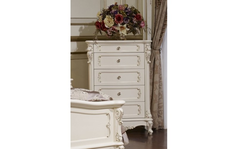 Комод M&K Глория с 5 ящиками, 78х45х110 см (МОЛОЧНЫЙ С ЗОЛОТОМ)