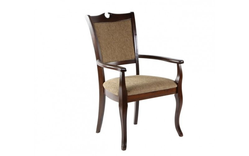 Высота данной модели кресла составляет 98 см, ширина – 61 см. и длина тоже – 61 см. Вес изделия равен 9 кг, объём – 0,09 м³. Цвет этой модели кресла – Tobacco (тёмный орех). Кресло произведено в Малайзии. Каркас и ножки выполнены из массива гевеи, так называемого малазийского дуба, отличающегося высокой прочностью и надёжностью. Спинка и сидушка обтянуты мягкой тканью, подлокотники не содержат обивки. Кресло поставляется как минимум в двух экземплярах.