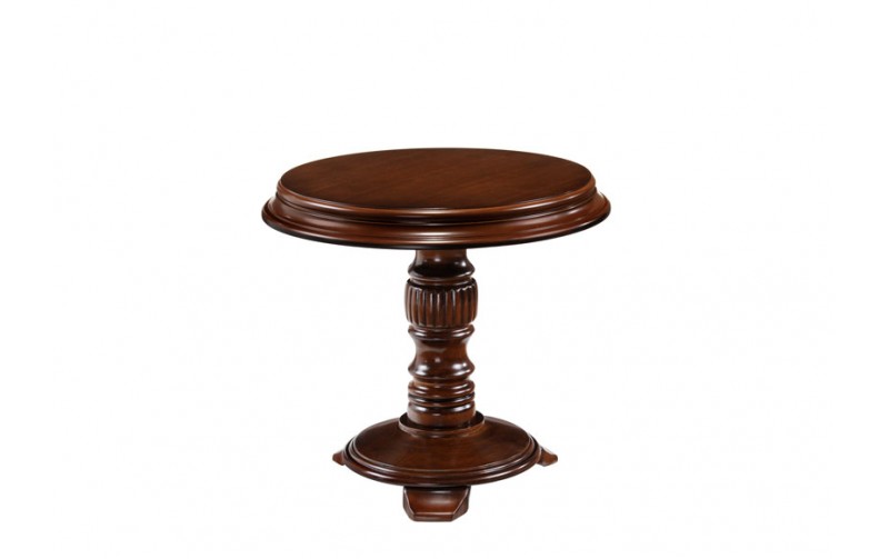Стол имеет круглую форму и основан на одной центральной ножке, которая немного расширяется к концу. Ширина и длина стола равны по 60 см. Объём его равен 0,07 м³. Цвет изделия Light Walnut. В основе стола лежит высококачественный массив дерева.