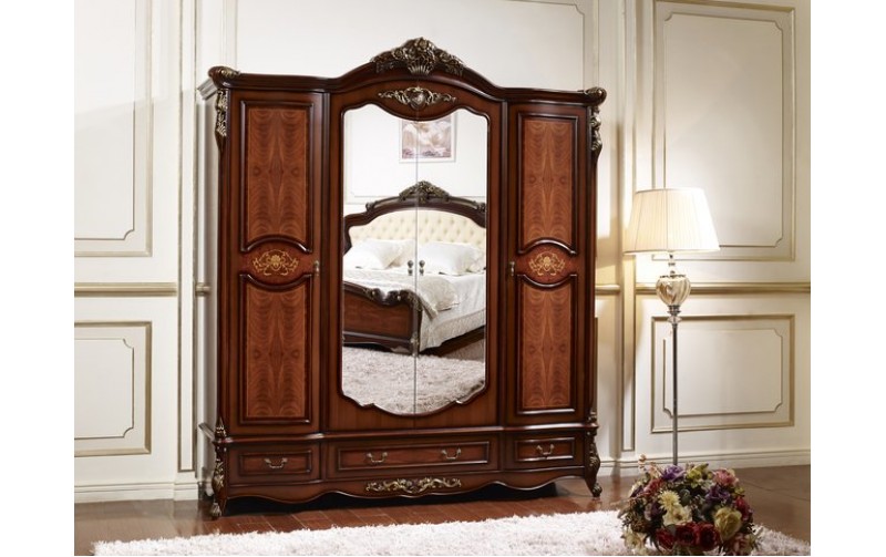 Шкаф 4-дверный M&K Аманда с зеркалами 215х63х240 см (Темный орех с золотом)