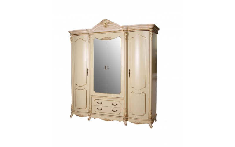 Шкаф 4-х дверный M&K Виктория с зеркалом, 212*60*232 см (Бежевый)