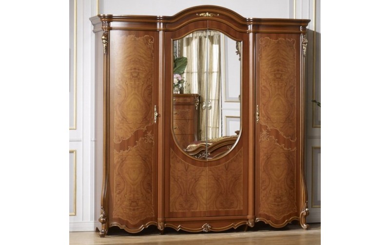 Шкаф 4-х дверный M&K Юлиана с зеркалом (Темный орех)