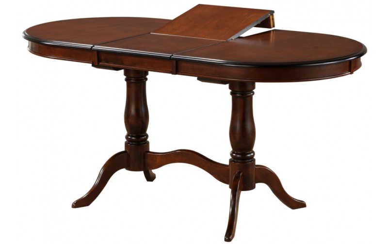 Стол является овальным и раскладным, держится на двух устойчивых ножках. Высота стола составляет 75 см. Длина изделия, в собранном состоянии – 120 см., в разобранном – 159 см., ширина – 80 см. Вес стола равен 33 кг, а объём 0,19 м³.Цвет этой модели – Tobacco или, что одно и тоже, темный орех.
