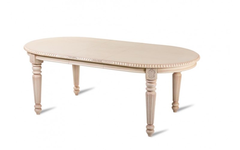 Стол имеет овальную форму и основан на четырёх изящных и резных ножках. Он имеет ширину – 107 см., длину в собранном состоянии – 163 см., а в разложенном – 204 см. Высота стола равна 76 см. Вес изделия – 54 кг., а объём – 0,32 м³. Цвет стола - HN GLAZE или, что одно и тоже, тёмный орех. Каркас стола представляет собой массив гевеи, каучукового малайзийского дерева, которое часто сравнивают с дубом. Столешница состоит из шпонированного МДФ.