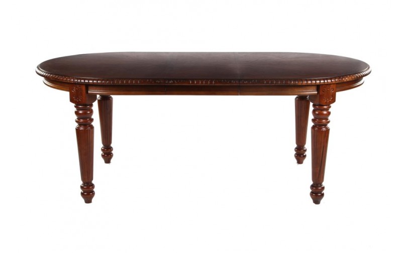 Стол имеет овальную форму и основан на четырёх устойчивых ножках, имеющих красивую резьбу. Ширина стола равна 107 см, длина 163 см., раскладываясь, стол удлиняется на 41 см. и достигает 204 см. в длину. Высота стола – 76 см. Вес изделия – 54 кг., а объём – 0,32 м³. Цвет этой модели - слоновая кость с патиной.