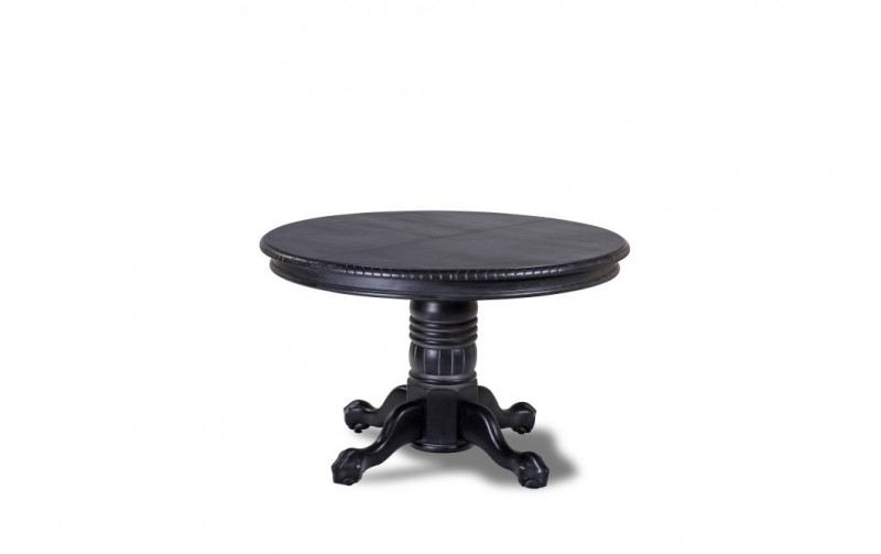 Стол имеет круглую форму, основывается на одной ножке, которая разделяется книзу на четыре ножки. Вес стола равен 54,2 кг, а объём 0,36 м ³. Высота составляет 77 см. Ширина и длина равны по 120 см., раскладываясь же он увеличивается в длину до 183 см. Цвет изделия - слоновая кость (с патиной).