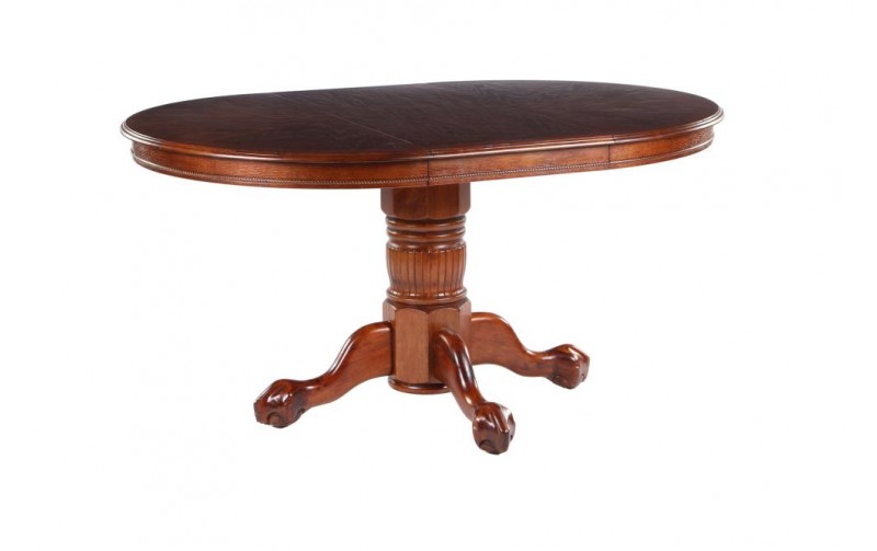 Стол имеет круглую форму, основывается на одной резной ножке, которая книзу имеет четыре разветвления. Ширина и длина стола равны по 107 см., при раскладывании, его длина увеличивается до 153 см. Высота изделия равна 77 см. Вес равен 42,8 кг., а объём – 0,24 м³. Цвет этой модели – тёмный орех.