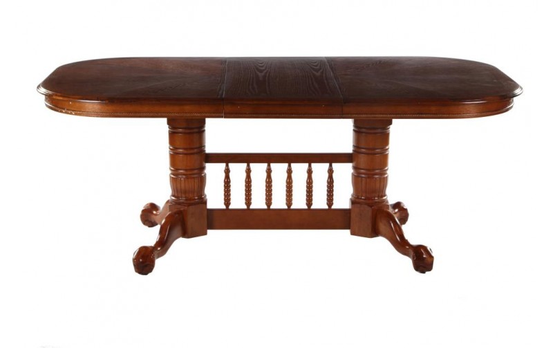 Стол имеет овальную форму и основывается на двух удобных ножках, соединённых перекладиной и разделяющихся внизу ещё на две небольшие ножки. Ширина стола равна 107 см., длина составляет 153 см., он раскладной, поэтому при раскладывании его длина может достигать 199 см. или 245 см. Высота изделия равна 77 см. Вес – 68 кг., а объём – 0,37 м³. Цвет этой модели – тёмный орех.