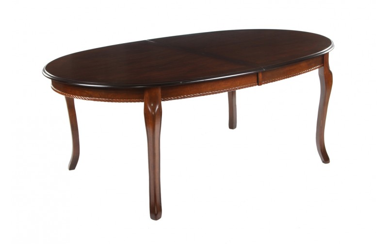 Стол произведён в Малайзии. Каркас стола выполнен из массива гевеи. Столешница стола представляет собой МДФ, покрытый шпоном. Эта модель имеет овальную форму, столешница держится на четырёх удобных ножках. Ширина стола равна 120 см., длина в сложенном состоянии - 196 см., разлаживаясь же он удлиняется до 240 см. Высота изделия – 75 см. Вес этой модели равен 68 кг., объём – 0,43 м³. Цвет стола – Tobacco (тёмный орех).