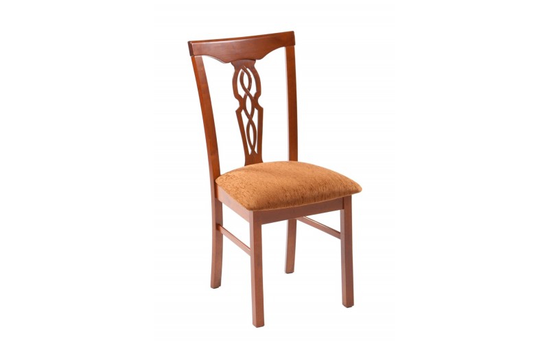 Эта модель стула была произведена в Малайзии. Каркас и ножки выполнены из массива гевеи, отличающейся такими качествами как прочность, влагостойкость, морозостойкость, теплостойкость, стойкость к впитыванию запахов, стойкость к гниению, стойкость к деятельности паразитов и нетоксичность. Сидушка обита мягкой немаркой тканью.
