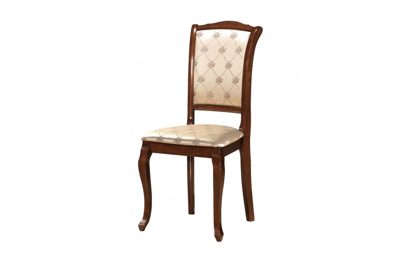 Стул произведен в Малайзии. Каркас и ножки выполнены из массива гевеи, каучукового дерева, отличающегося высокой прочностью и экологичностью. Спинка и сидушка обтянуты мягкой тканью. Высота данной модели стула составляет 97 см, ширина – 52 см., а длина – 44см. Вес изделия равен 6 кг, объём – 0,06 м³. Цвет каркаса стула – Tobacco (тёмный орех), а ткани - SK-GF. При заказе этой модели, нужно учитывать, что Вы можете заказать как минимум пару таких стульев, так как они поступают в двухместных коробках.
