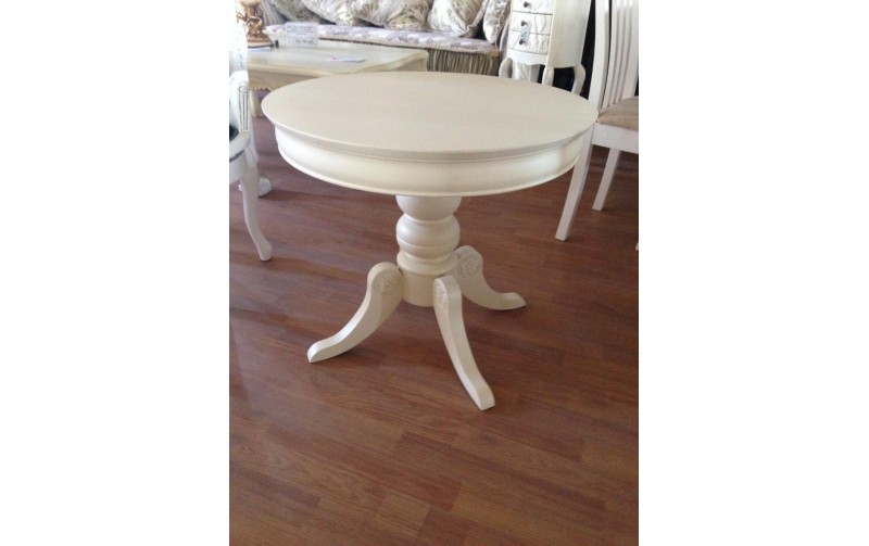 Стол имеет круглую форму, основывается на одной ножке, имеющей в конце четыре изогнутых разветвления. Ширина и длина стола равны по 66 см., высота изделия равна 72 см. Вес – 15,6 кг., а объём – 0,08 м³. Цвет этой модели – Butter White (белый).