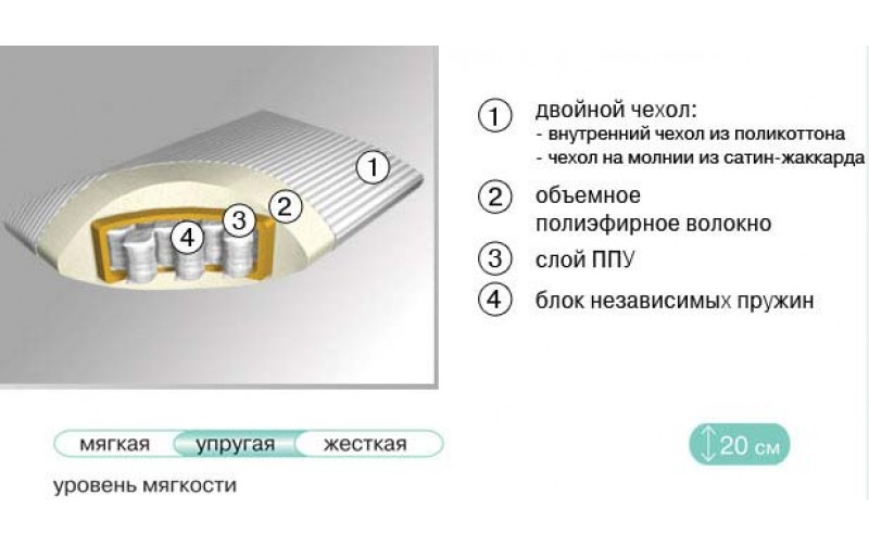 Беспружинные матрасы, размером более 200 см рассчитываются индивидуально.